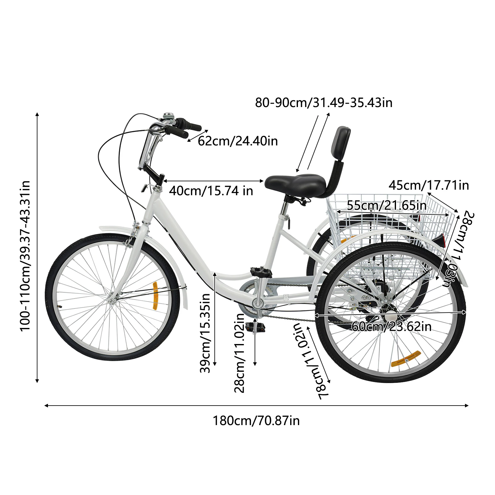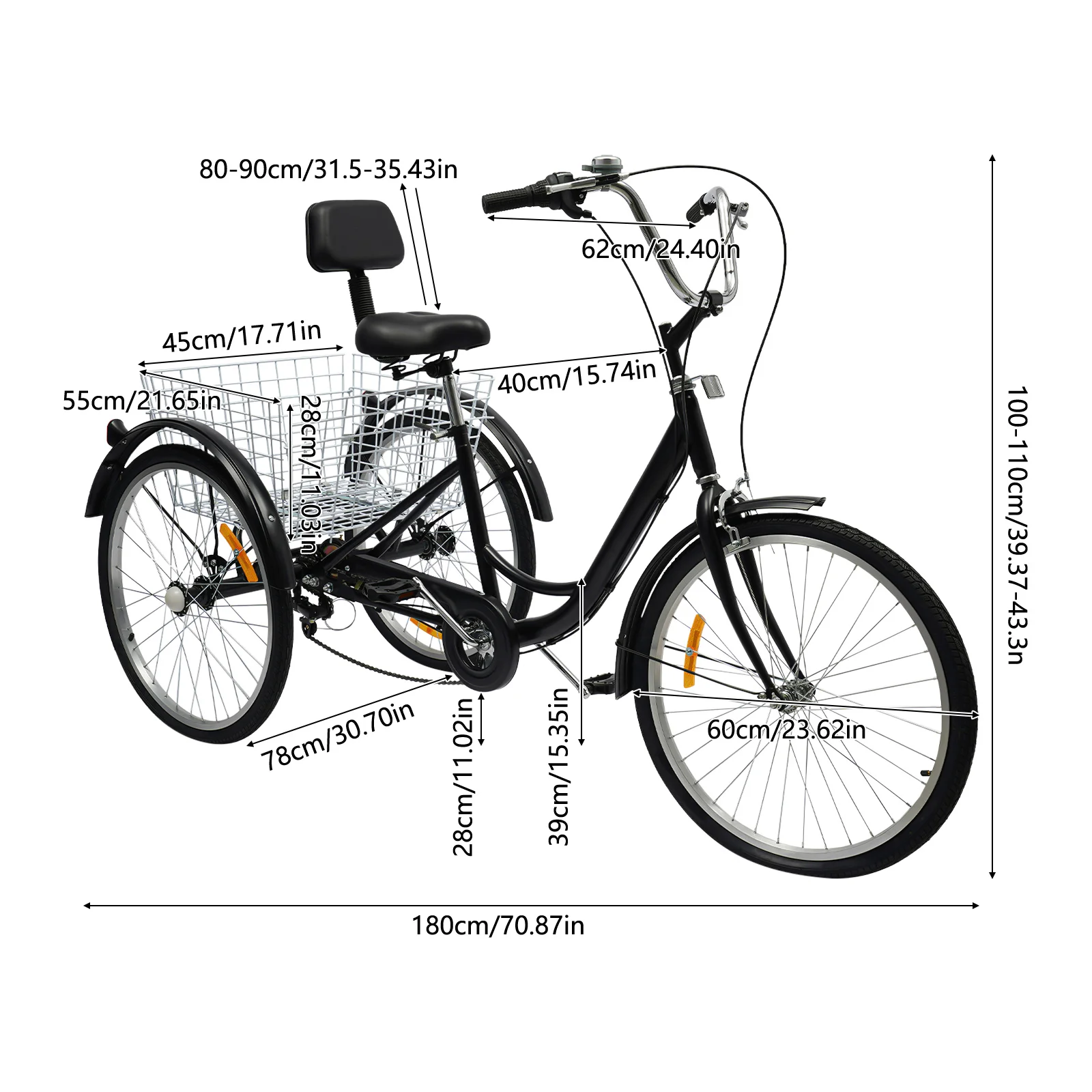 ✅ Duurzaam materiaal – Gemaakt van hoogwaardig koolstofstaal en aluminium; sterk, stabiel en langdurig bruikbaar. ✅ 6 versnellingen – Pas je snelheid moeiteloos aan op basis van terrein of comfort. ✅ Superstabiel ontwerp – De drie wielen en driehoekige frameconstructie zorgen voor maximale veiligheid, zelfs voor wie minder balans heeft. ✅ Ruime achtermand – De witte mand heeft een draagcapaciteit tot 20 kg en is perfect voor je boodschappen of spullen. ✅ Comfortabel zadel – Het met spons gevulde zadel biedt zachtheid en ondersteuning, zelfs tijdens langere ritten. ✅ In hoogte verstelbaar – Zowel het stuur als het zadel zijn verstelbaar (10 cm), zodat je altijd de juiste houding hebt. ✅ Perfecte rijervaring – De afstand tussen stuur en zadel (40 cm) is ergonomisch afgestemd op volwassenen. ✅ Stijlvol ontwerp – De retro-look met eenvoudige lijnen maakt je een echte eyecatcher onderweg. ✅ Ideaal als cadeau – Een mooi en praktisch geschenk voor ouders of grootouders die op zoek zijn naar zelfstandige mobiliteit. ✅ Topservice – Heb je vragen of hulp nodig? Wij staan klaar met snelle en vriendelijke klantenservice.