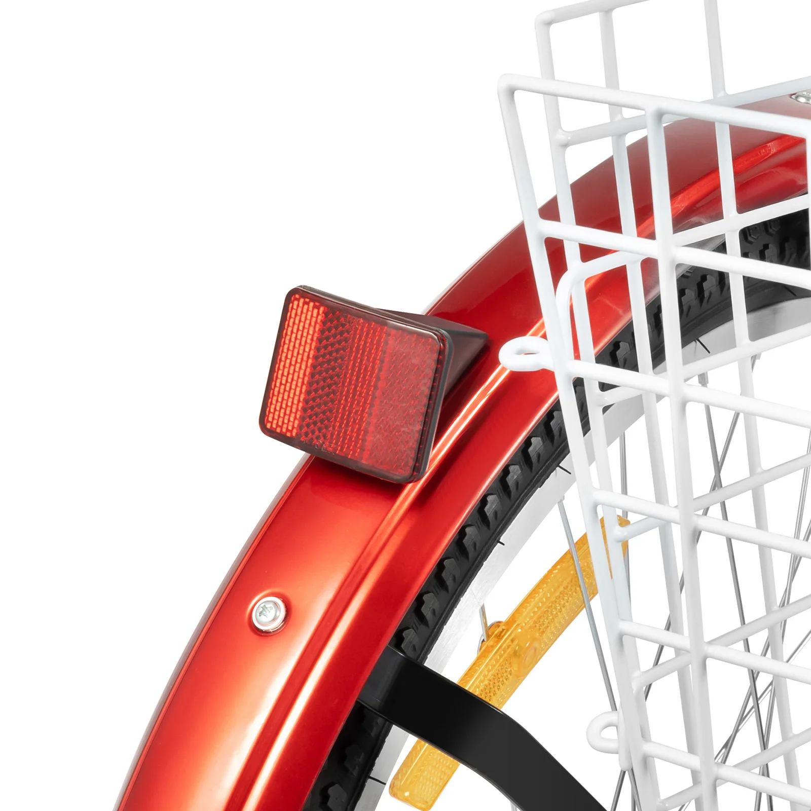 Veilig rijden: Voorzien van een V-rem vooraan en een houderrem achteraan voor krachtige en gevoelige remprestaties. De voor- en achterlamp en spaakverlichting zorgen voor extra veiligheid bij nachtelijk gebruik.