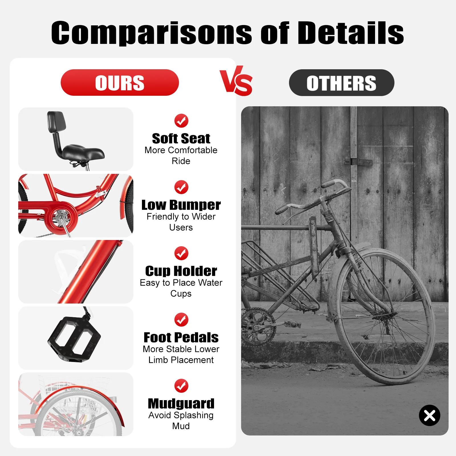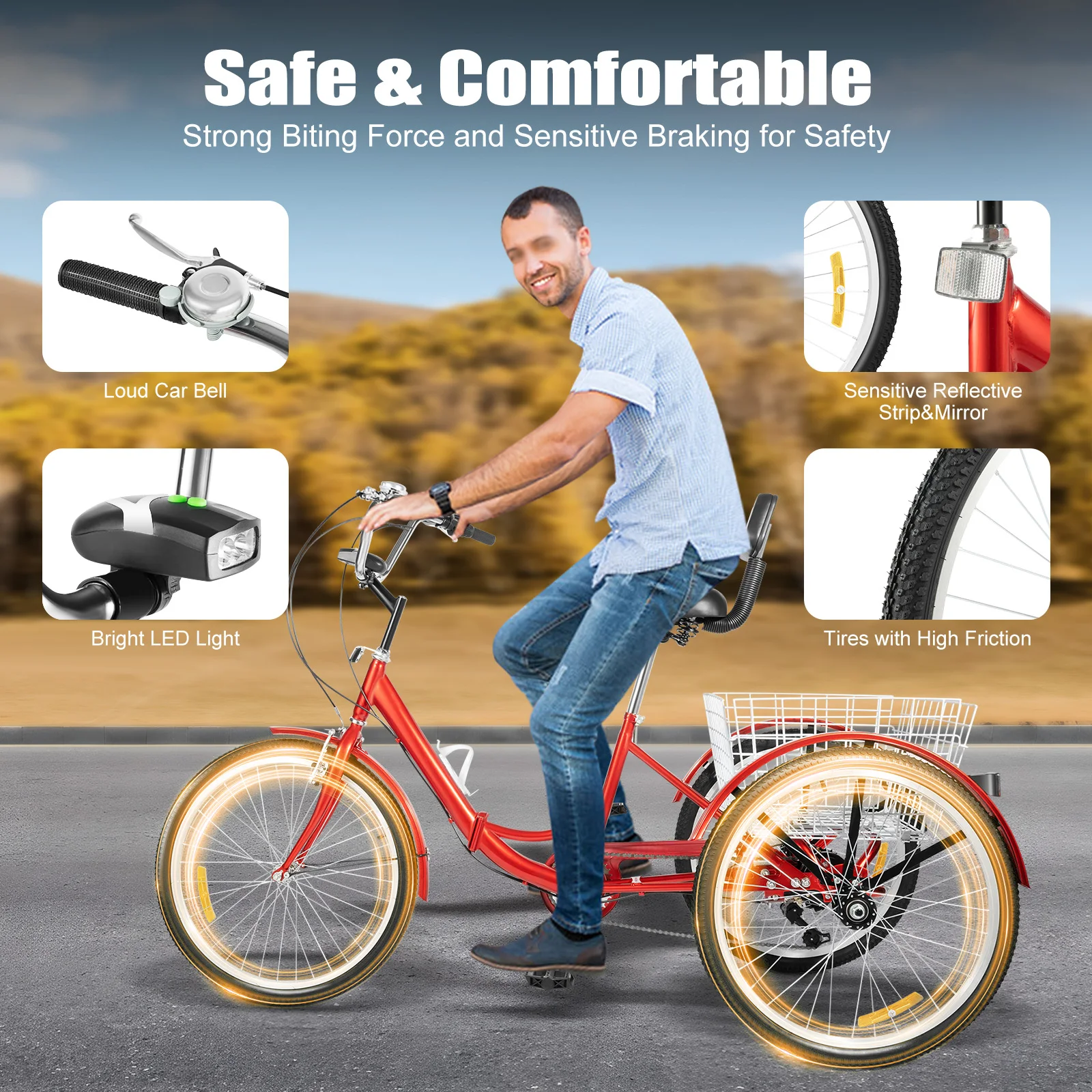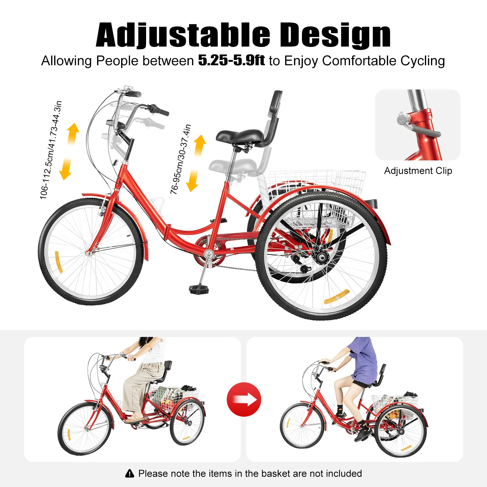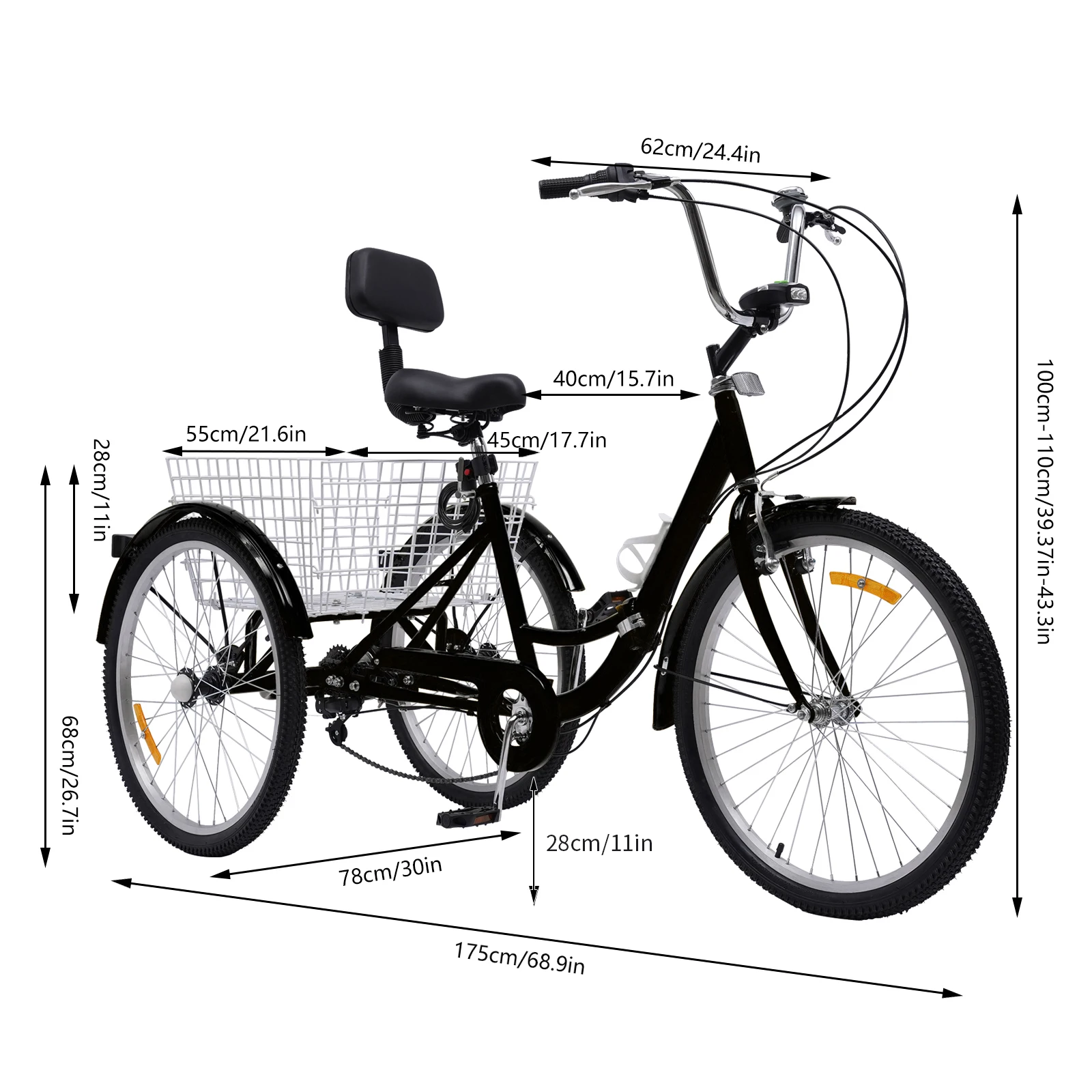 Deze driewieler is ideaal voor mannen, vrouwen, ouderen, tieners en volwassenen met een lengte tussen 1,6 m en 1,8 m (5,25 - 5,9 ft) en een maximaal gewicht van 120 kg (264,5 lbs). Perfect voor ontspannen ritjes, picknicks, boodschappen doen en allerlei buitenactiviteiten. Geschikt voor gebruik in steden, op het strand, fietspaden en diverse wegen.