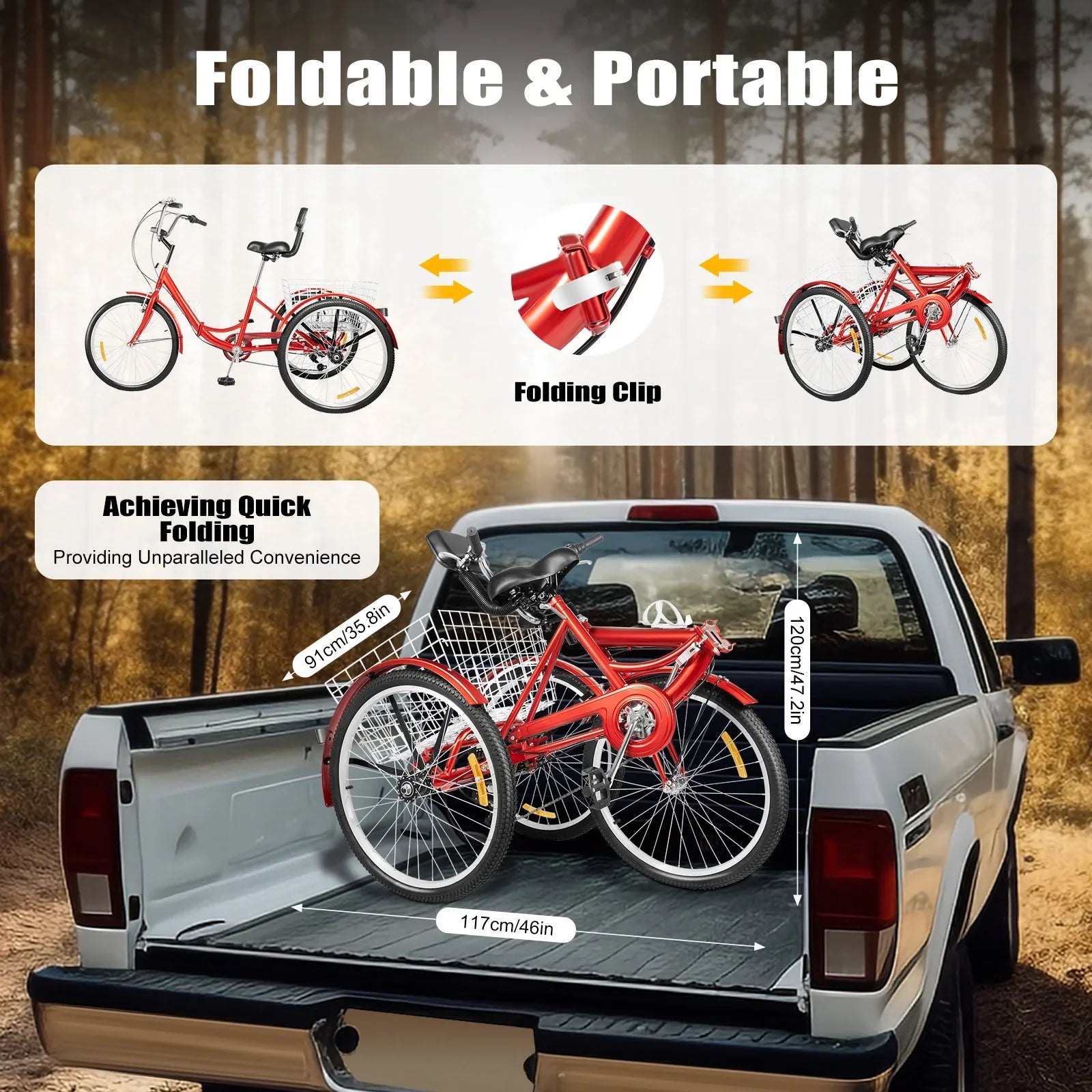 Opvouwbaar ontwerp: Dankzij de inklapbare frameclip vouw je de driewieler eenvoudig in. Hierdoor neemt hij weinig ruimte in beslag en is hij gemakkelijk mee te nemen in de kofferbak van je auto.