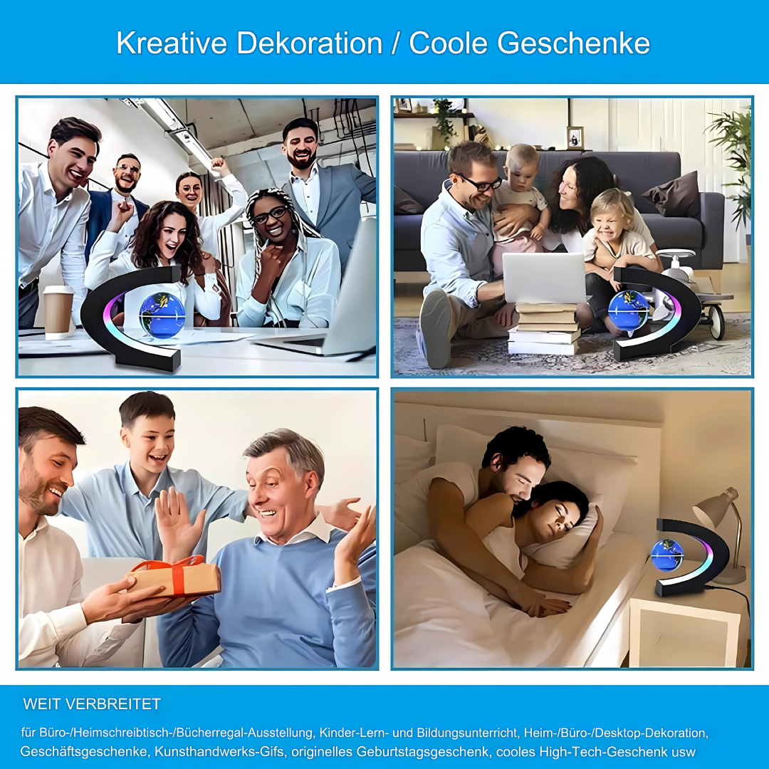 Magnetische ophanging: De globe zweeft en roteert zelfstandig – een echte blikvanger.