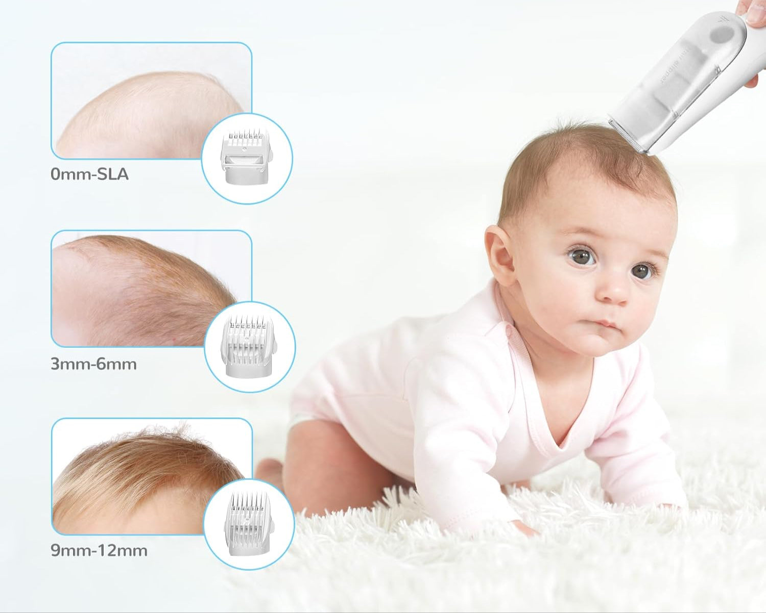 Super stil: Met een geluidsniveau van minder dan 45 dB kun je zelfs het haar van je baby knippen terwijl hij slaapt, zonder hem te storen.