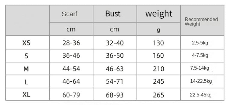 Kies de juiste maat voor jouw hond aan de hand van de borstomtrek in de onderstaande afbeelding.