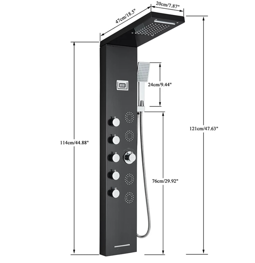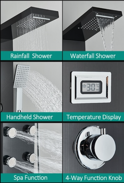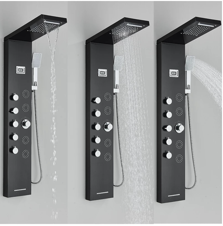 5-in-1 Douchesysteem - Met dit douchepaneel heb je keuze uit 5 comfortabele douche modi: waterval, regenval, vier jet-massagestralen, een handdouche.