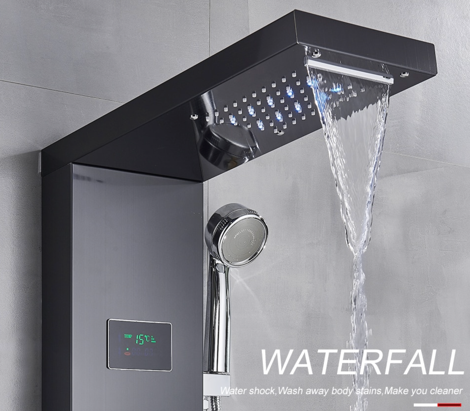 5-in-1 Douchesysteem - Met dit douchepaneel heb je keuze uit 5 comfortabele douche modi: waterval, regenval, vier jet-massagestralen, een handdouche en een onderkraan.