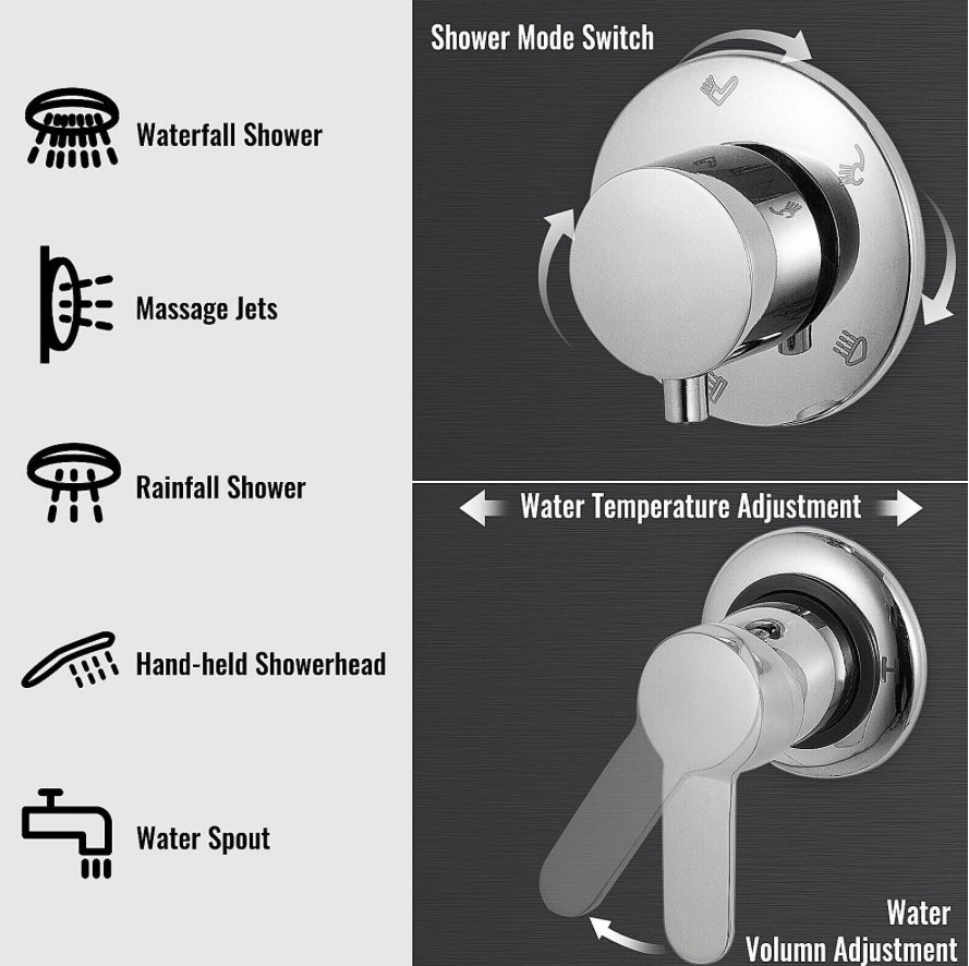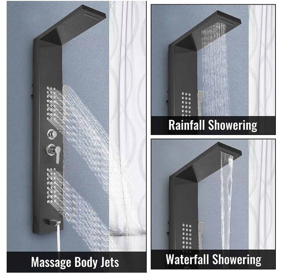 5-in-1 Douchesysteem - Met dit douchepaneel heb je keuze uit 5 comfortabele douche modi: waterval, regenval, groot massagepaneel met mini-jets, een handdouche en een onderkraan.
