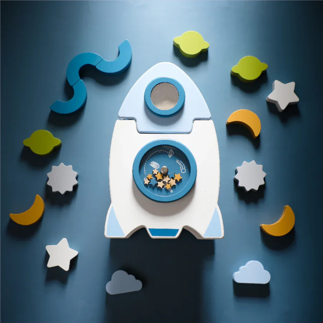Met het educatief houten blokkenspel kunnen kinderen hun eigen ruimteavonturen vormgeven. Dit innovatieve speelgoed combineert plezier met leren en stimuleert de creativiteit, fijne motoriek en probleemoplossende vaardigheden van jonge ontdekkers. Dankzij de kleurrijke, ruimtevormige blokken worden kinderen uitgedaagd om unieke raketten en ruimteschepen te bouwen, waardoor hun verbeelding en cognitieve ontwikkeling worden gestimuleerd.