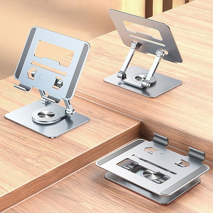 Gemaakt van een verdikte aluminiumlegering met gladde randen, biedt onze roterende tabletondersteuning uitstekende stabiliteit en beschermt uw tablet tegen krassen.