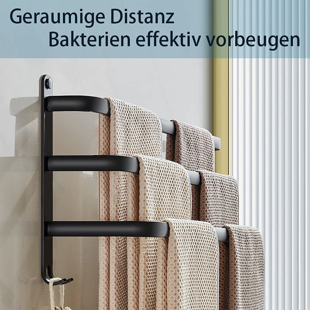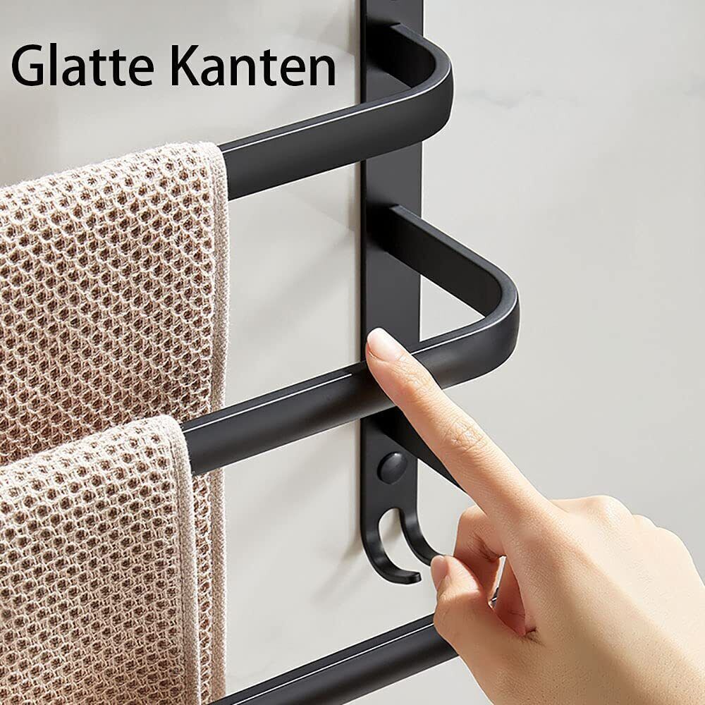 Verschillende diepten van de stangen zorgen ervoor dat handdoeken goed kunnen drogen.