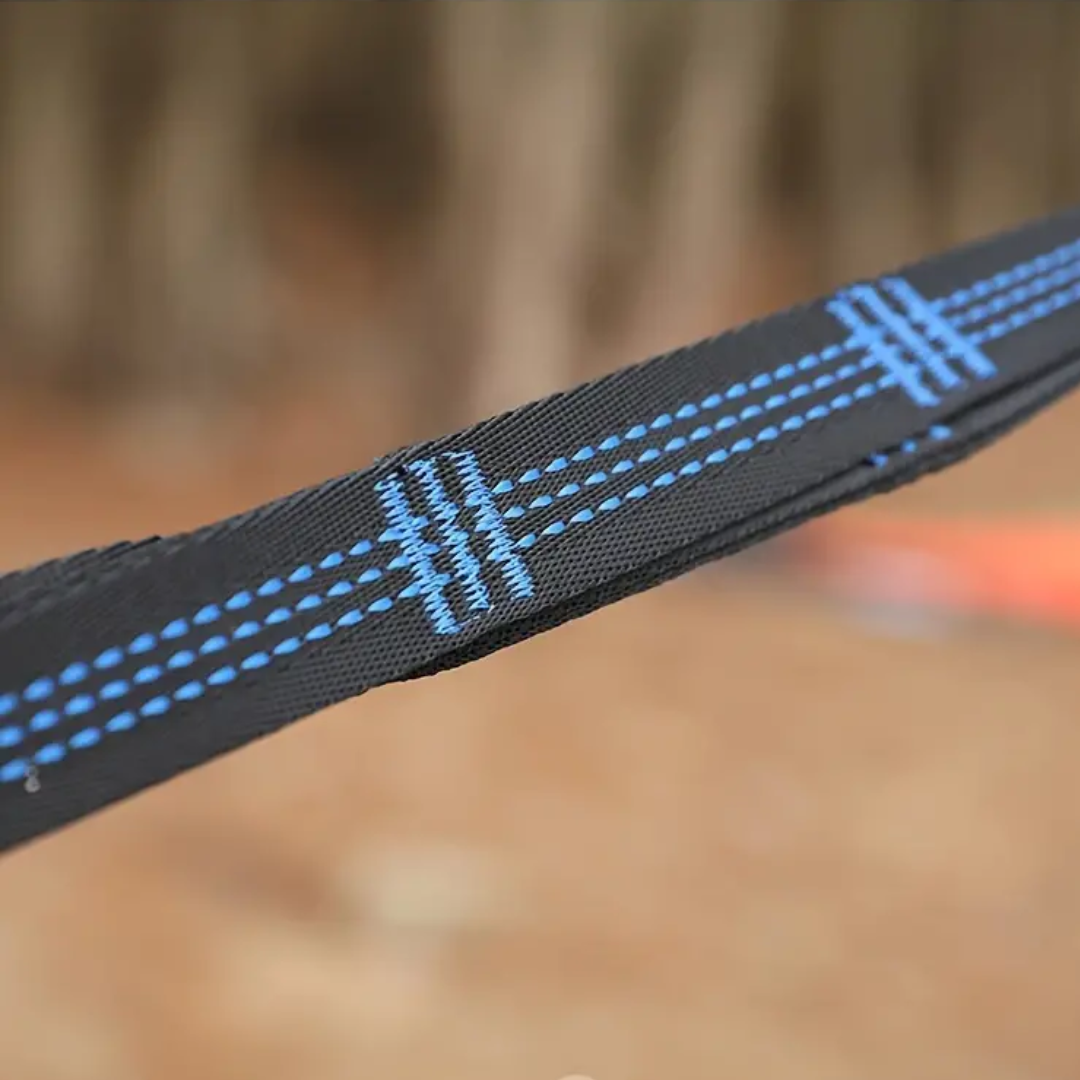 Comfortabel en Duurzaam: Gemaakt van hoogwaardige parachute materialen, biedt deze hangmat zowel comfort als duurzaamheid. Het is lichtgewicht en toch sterk genoeg om twee personen comfortabel te dragen.