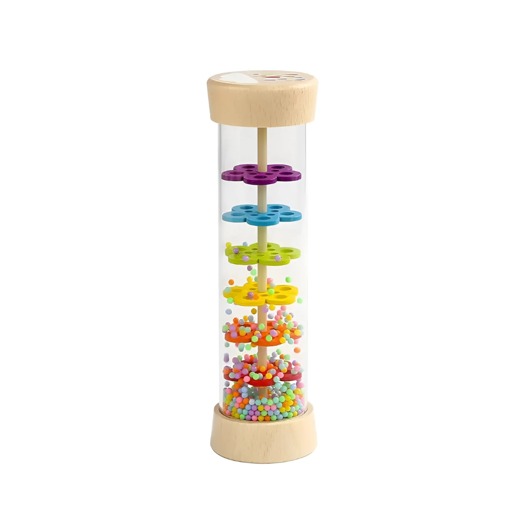 Breng rust en plezier in de speeltijd van je baby. Bestel vandaag nog de RainMelody houten rammelaar en laat je kleintje genieten van rustgevende klanken en eindeloos speelplezier!