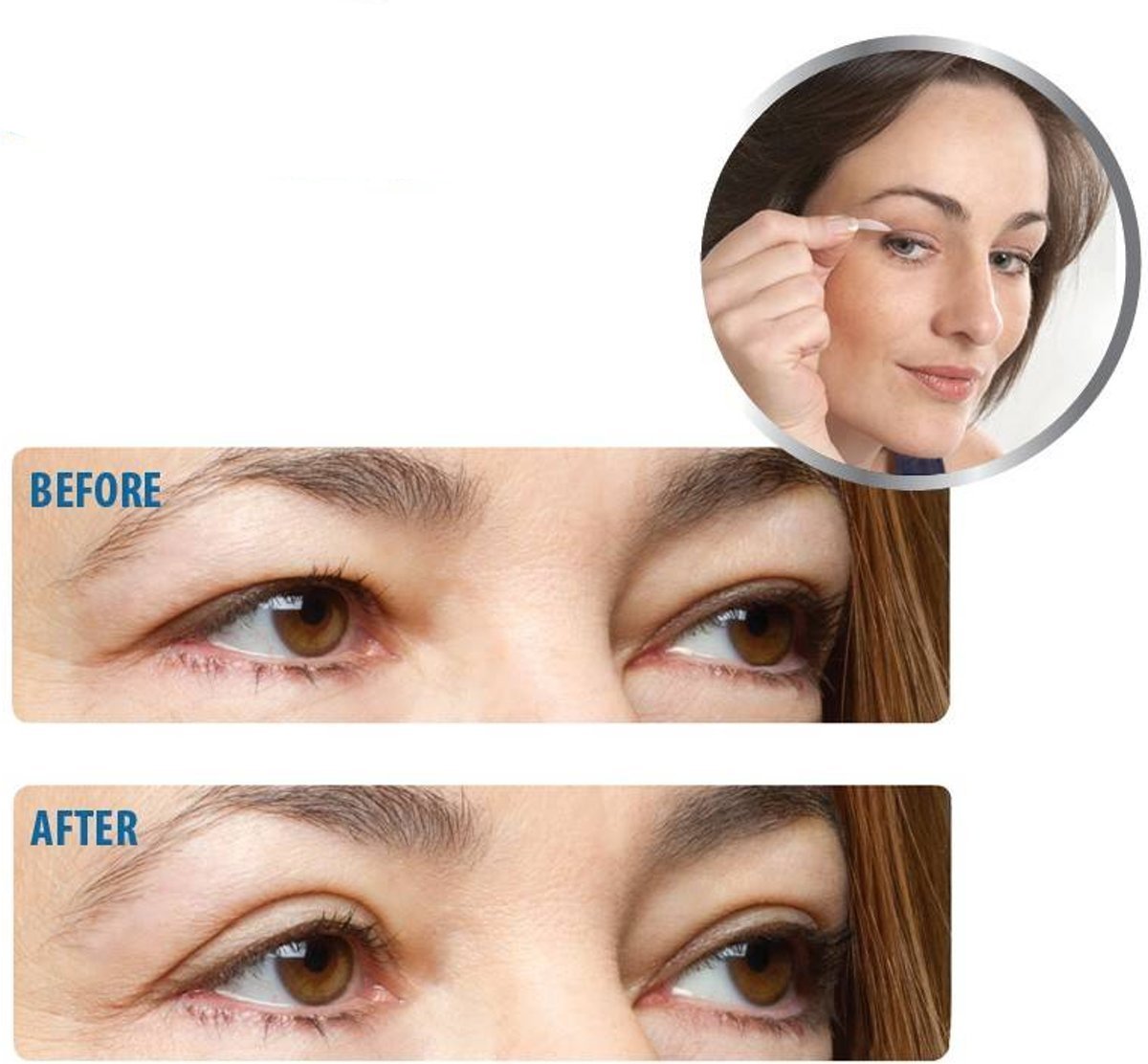 Iedereen heeft kleine geheimen wanneer het aankomt op schoonheid en vaak kunnen grote resultaten geboekt worden met een paar slimme trucs. Zo ook met deze ooglid stickers! Ze corrigeren de overhangende oogleden en geven je zo een frissere en jongere blik in enkele seconden. Je hebt dus het effect van een ooglift maar dan zonder die dure en gevaarlijke operatie. De strips zijn gemakkelijk in gebruik en je voelt ze niet op je ooglid zitten. Ze blijven de hele dag en indien gewenst ook nog 's nachts zitten.
