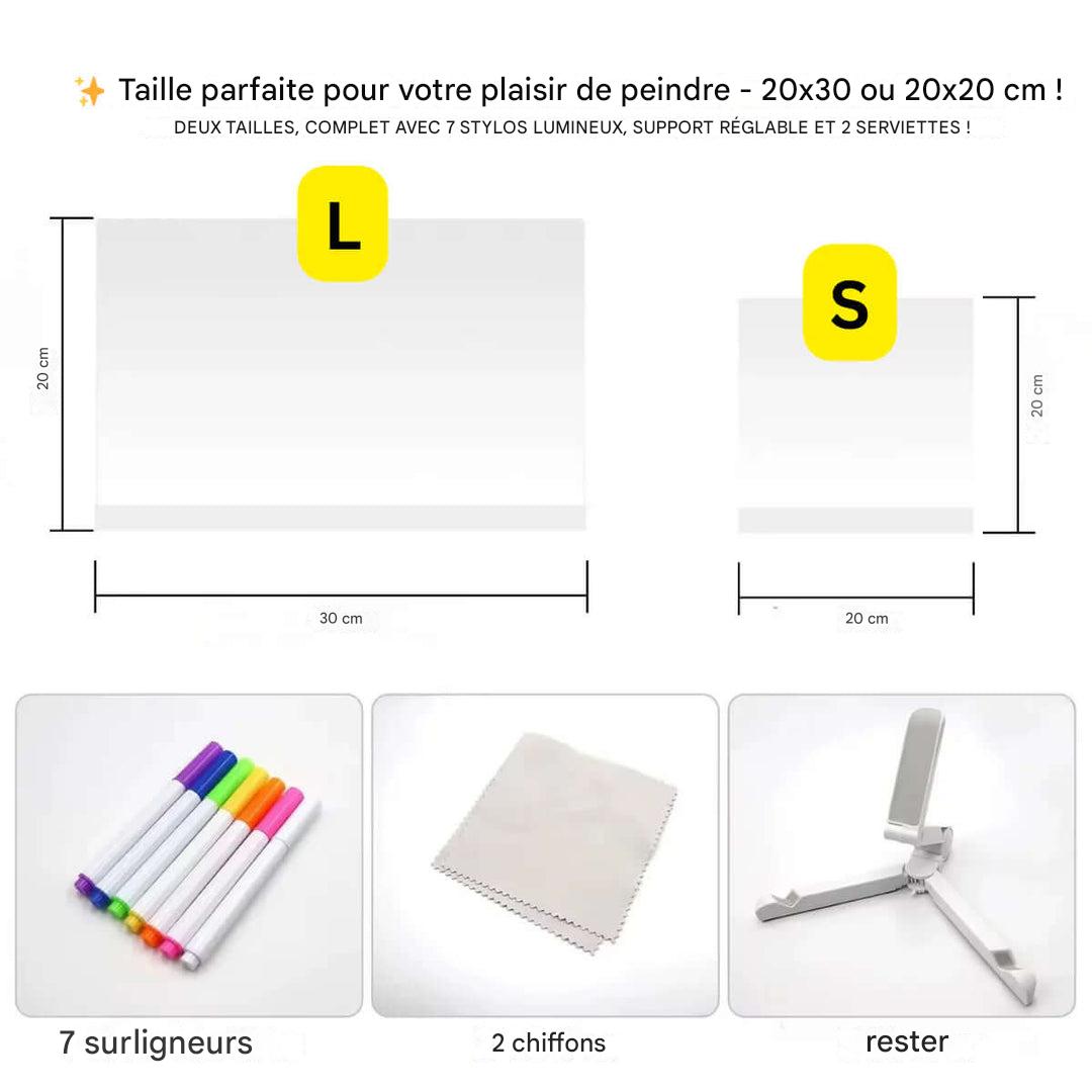 Het Kiddli LED-tekenbord biedt kinderen en volwassenen een innovatieve manier om te tekenen, schrijven en plannen. Met de bijgeleverde lichtpen met 7 kleuren creëer je sprankelende kunstwerken die in het donker oplichten.