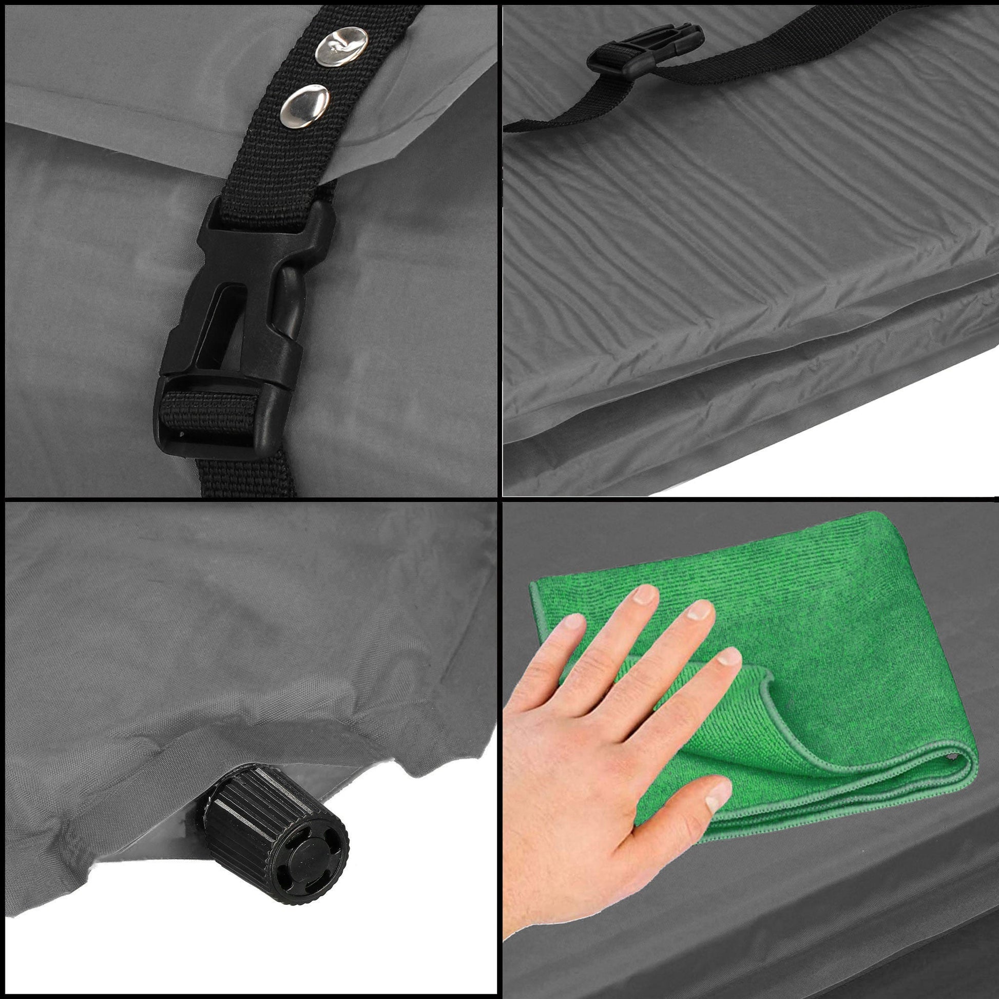 Deze zelfopblazende slaapmat is de perfecte aanvulling op uw kampeer- en backpackuitrusting. Met een gewicht van slechts 1 kg en een compact opvouwbaar ontwerp neemt u hem eenvoudig overal mee naartoe – van camping en strand tot meerdaagse trektochten. De mat is belastbaar tot 110 kg en biedt comfortabele ondersteuning, inclusief een geïntegreerd kussen voor extra gemak.
