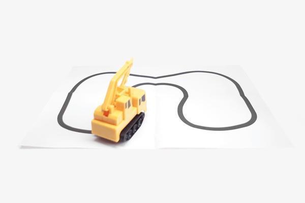 De magische speelgoed vrachtwagen volgt dus de route die gemaakt is met een zwarte pen. Wanneer er nog geen route is uitgestippeld dan blijft de speelgoed vrachtwagen in cirkels draaien totdat de route wordt geplot. Kinderen kunnen hun creativiteit de vrije loop laten en ook hun verbeeldingskracht wordt gestimuleerd.