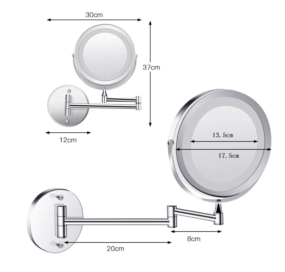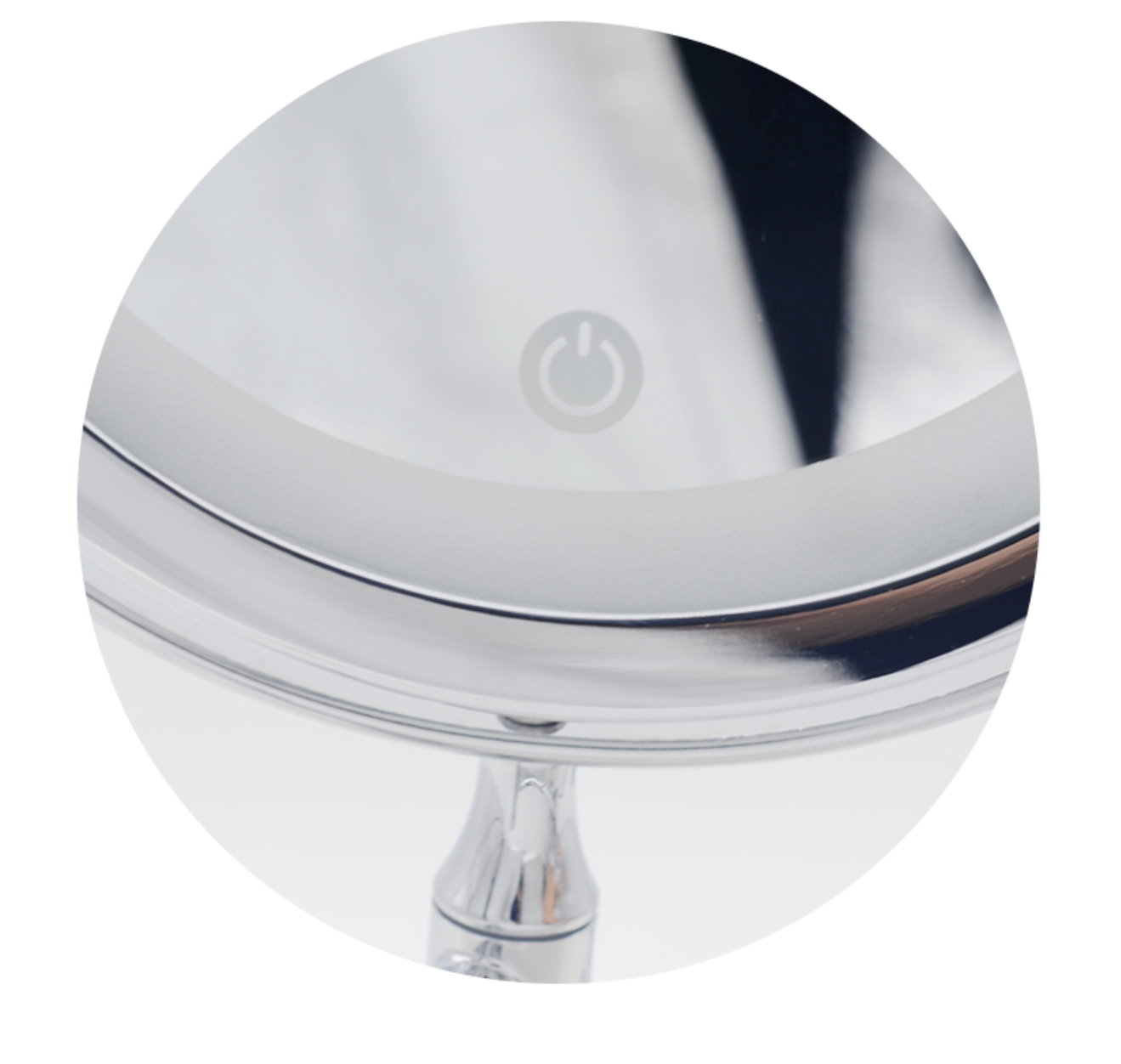 De spiegel met een diameter van 17cm is voorzien van LED verlichting om u nog beter te helpen met het zien wat u doet. De make-up spiegel is kantelbaar en draaibaar dus u kunt hem in elke gewenste stand zetten.