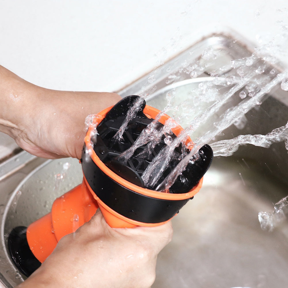 De reden dat dit ontstoppings kanon zo goed werkt is de gepatenteerde binnenkamer van het kanon. Deze zorgt ervoor dat wanneer je op de bovenkant duwt, het water in een smalle, krachtige straal eruit wordt geschoten. Het vuil wat vastzit in je afvoer knalt dan vervolgens los en schiet het riool in!