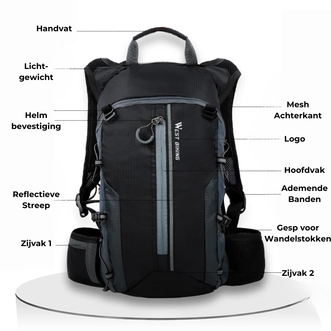 Ontworpen voor Fietsers: Met een focus op fietsen, is deze rugzak geoptimaliseerd voor het comfort en gemak van fietsers van alle niveaus.
