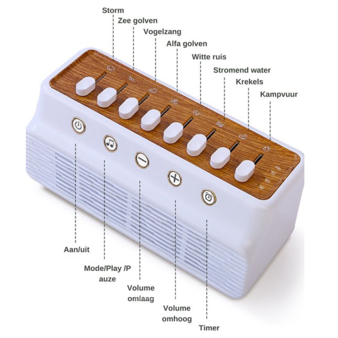Kan ik de geluiden combineren? Ja, je kunt de geluiden combineren met de schuifknoppen voor meer dan 250 mogelijke combinaties, zodat je altijd de ideale sfeer kunt creëren.