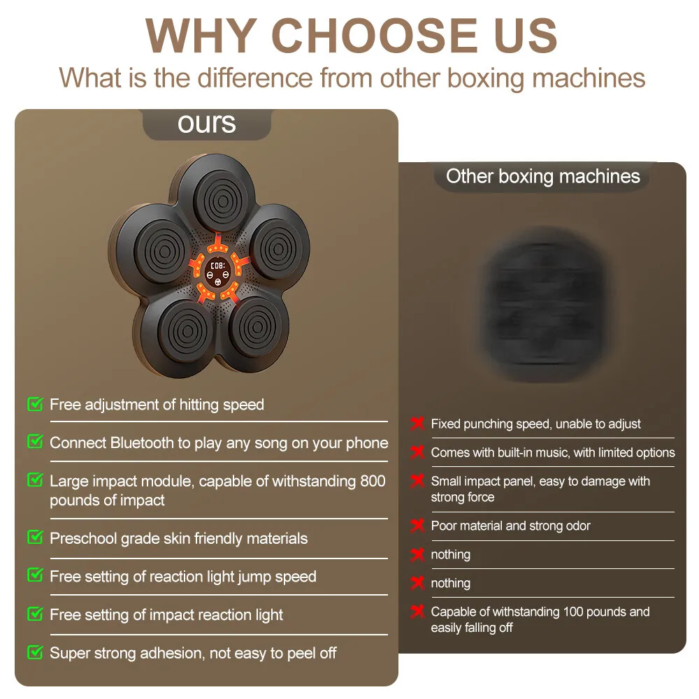 Til je fitness naar een hoger niveau met de RitmeBox Wandtrainer – een innovatieve boksmachine die ritme, cardio en precisie combineert. Met aanpasbare snelheid, Bluetooth-streaming, LED-feedback en touchscreenbediening is elke stoot niet alleen intensief, maar ook boeiend.
