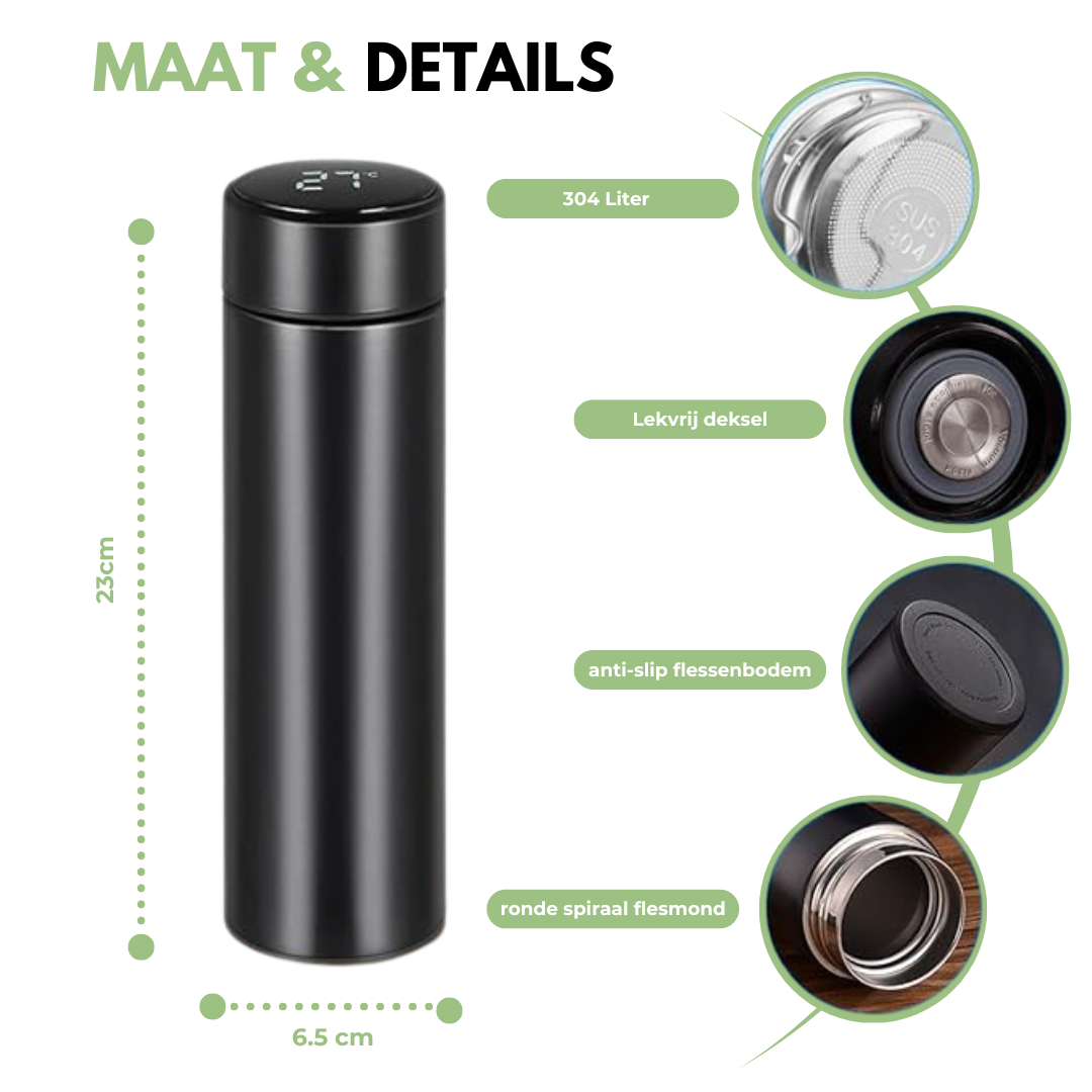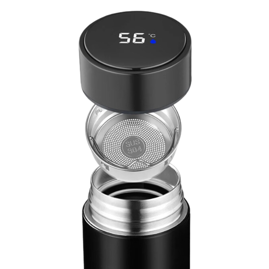 Temperatuurmeter: Deze thermosfles heeft een high-definition LCD-touchscreen en geeft in realtime de temperatuur van je drankje aan, zodat je altijd en overal de meest geschikte temperatuur kunt kiezen.