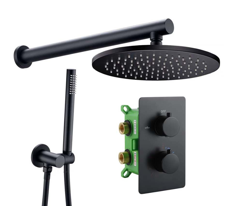 SaniSupreme® Inbouw Doucheset Washington Premium 2 weg 10 inch regendouche rond-rechthoek mat zwart