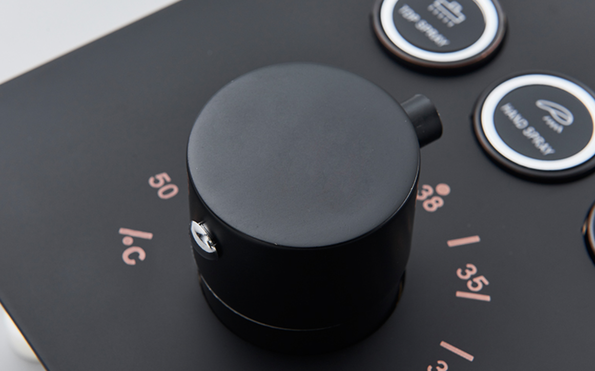Deze kwalitatief hoogwaardige inbouwset heeft een thermostatische inbouwunit-mengkraan met regelaar voor 2 uitgangen; 2 eenvoudige moderne touch-knoppen voor bediening van douche of handdouche. 3 uitgangen is tevens leverbaar (extra waterval muur- of baduitloop)