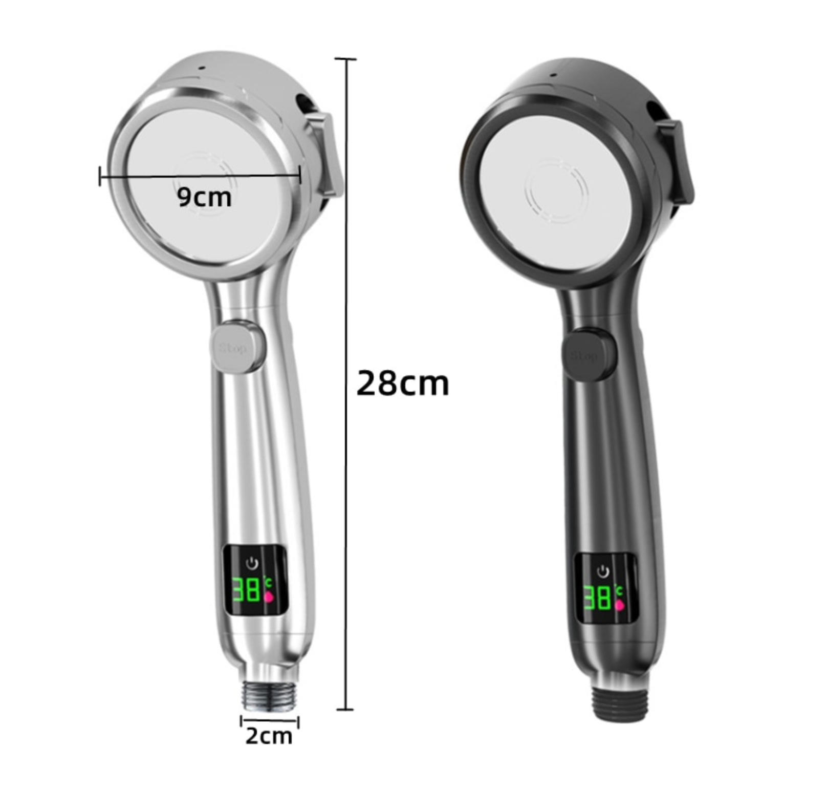 1 × Ronde multifunctionele handdouche (12 cm.) met led display