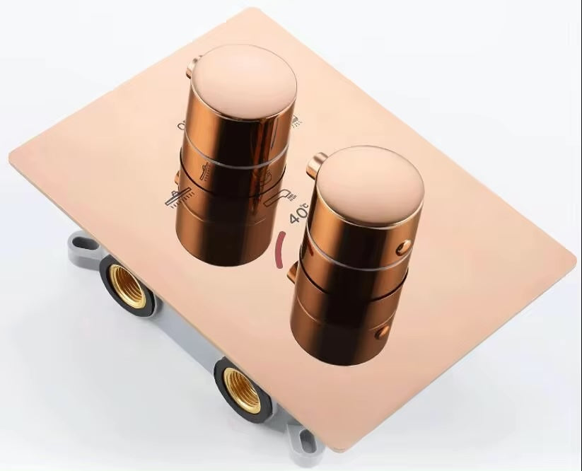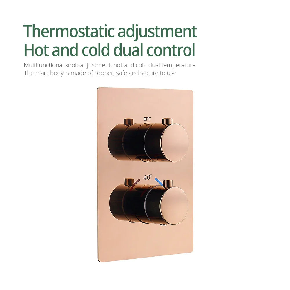 De wanduitloop bevestigt u in de muur en heeft een totale lengte van 36 cm. Op deze uitloop bevestigt u de ronde hoofddouche die een diameter van 25 cm heeft. De handdouche set is uitgerust met een staaf handdouche, een flexibele doucheslang en opsteekgarnituur om uw handdouche in te bewaren. De thermostaatkraan is voorzien van twee knoppen waarmee u zowel de temperatuur als de kracht van de waterstraal eenvoudig instelt.