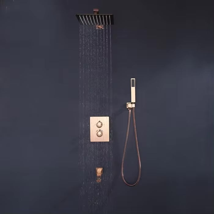 Inbouw Regendouche Set Marbella met Handdouche en Wanduitloop Geborsteld Koper
