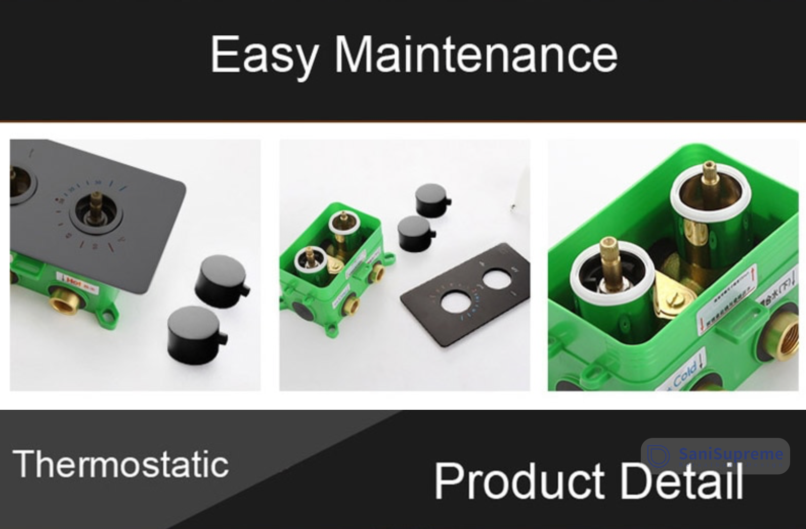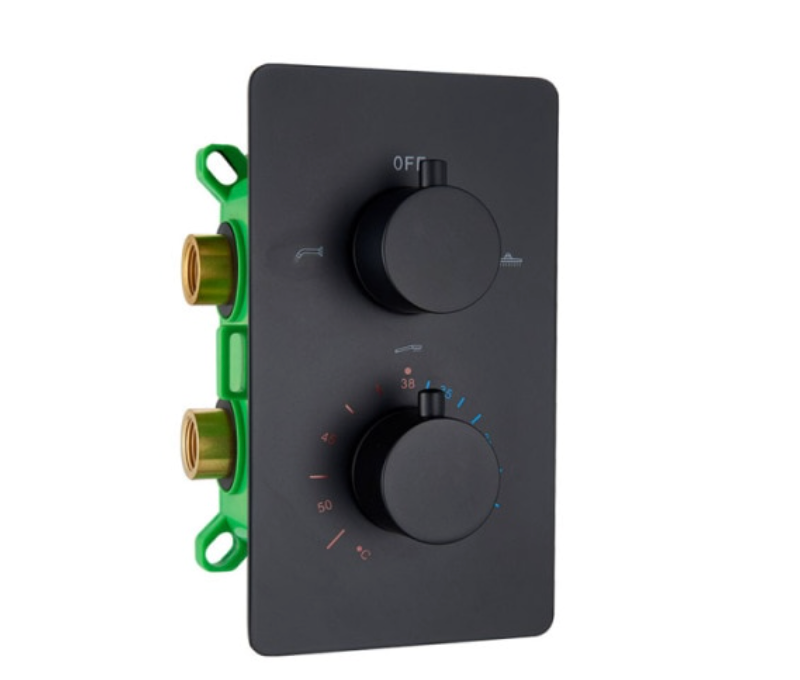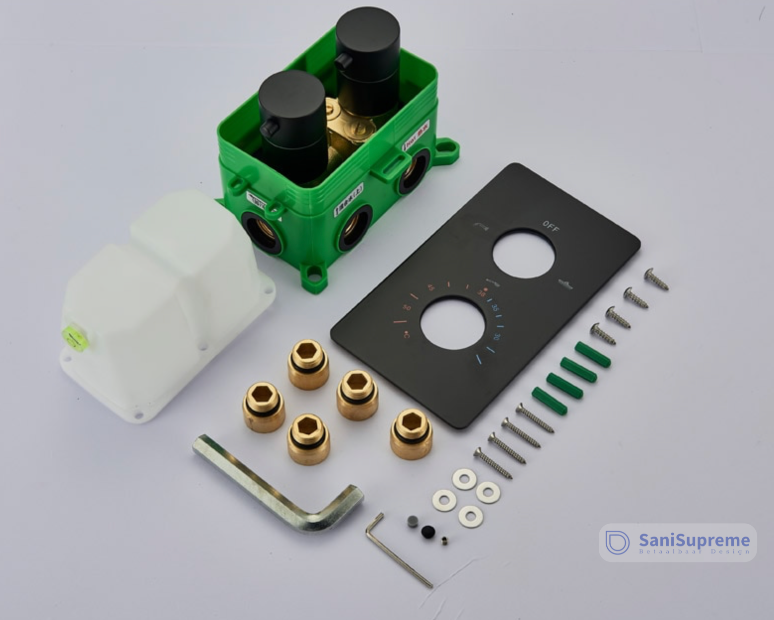 Professionele kwaliteitsmengkraan inbouw mat zwart uit de SaniSupreme serie Manhattan. Deze inbouw mengkraan is geschikt voor inbouw douchecombinaties met een 3-weg systeem (regendouche, kraan en handdouche). Deze is ook verkrijgbaar als 2-wegsysteem. Dit is de Premium versie met een mengkraan en afdekplaat met bediening handels/knoppen. De plaat is extra dik uitgevoerd (0.3 mm) en dus extra stevig en robuust.