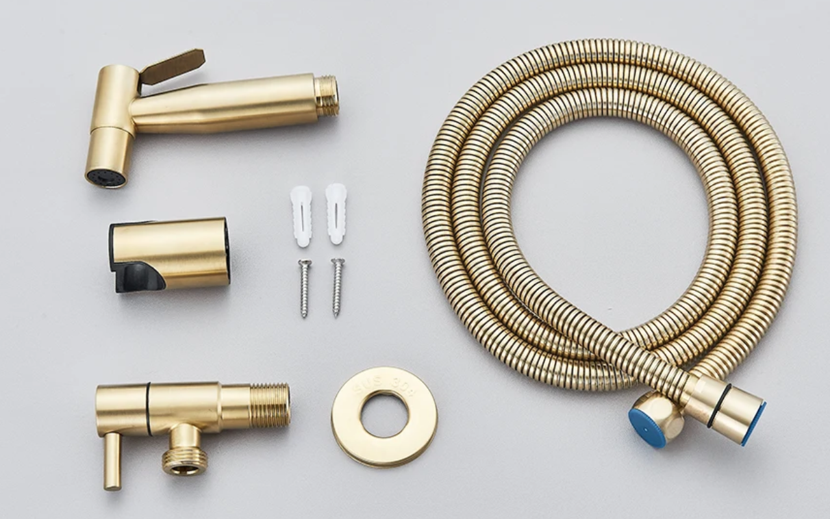 Deze bidet handdoucheset van SaniSupreme is uitgevoerd in de kleur geborsteld goud. Hiermee creëer je een stijlvolle uitstraling, wat perfect past in de moderne of industriële badkamer.
