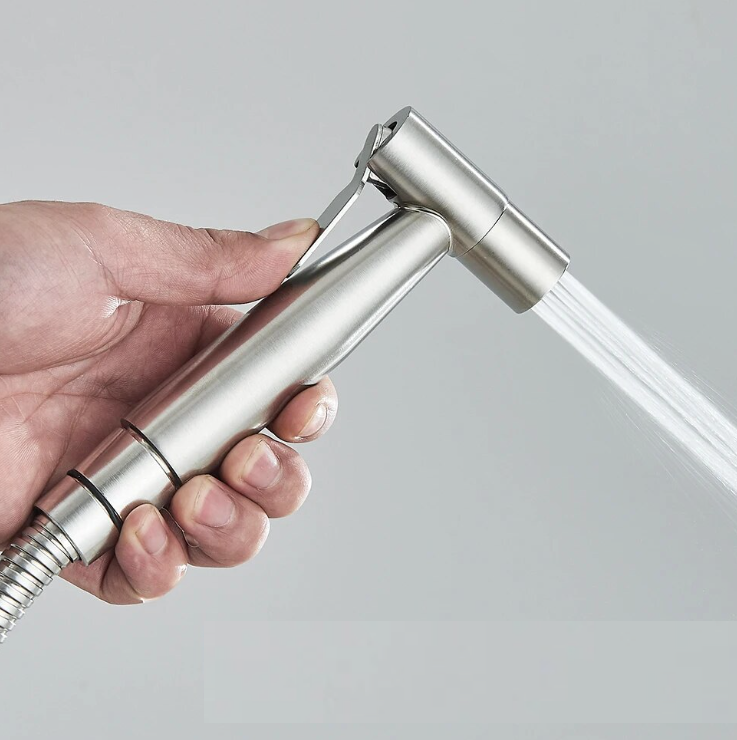 Deze bidet handdoucheset van SaniSupreme is uitgevoerd in de kleur rvs. Hiermee creëer je een stijlvolle uitstraling, wat perfect past in de moderne of industriële badkamer.