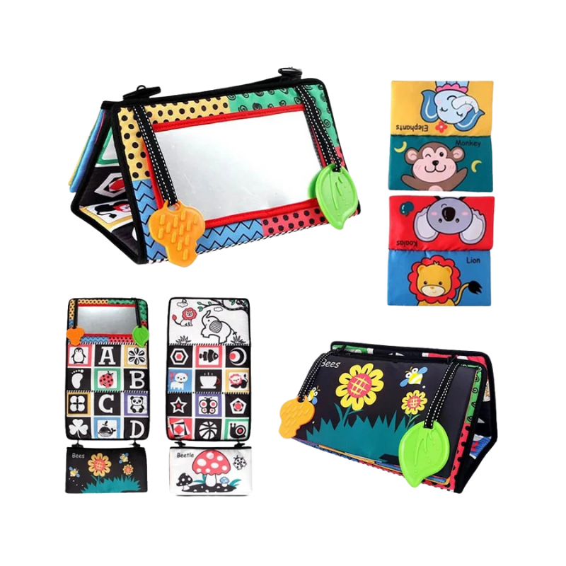 Met MirrorPlay geef je jouw baby een geweldige start in sensorisch spel. Dit vrolijke activiteitenset is ontworpen om de zintuigen te prikkelen en de ontwikkeling te stimuleren. Van een veilige spiegel tot knisperende vlakken en felle contrasten, alles is aanwezig voor een leerzame en speelse ervaring. Perfect voor tummy time en het ontwikkelen van visuele focus!