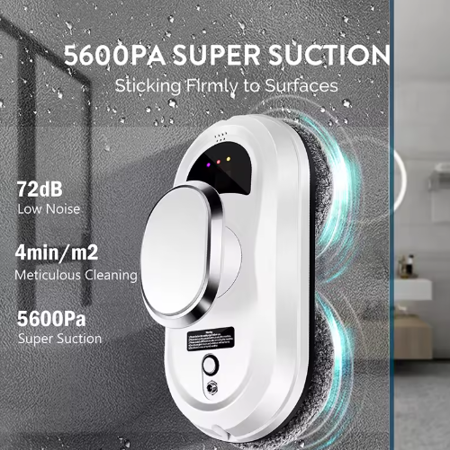 💪 Sterke zuigkracht: De krachtige vacuümtechnologie zorgt ervoor dat de robot stevig op het raam blijft, zelfs op grote hoogte.