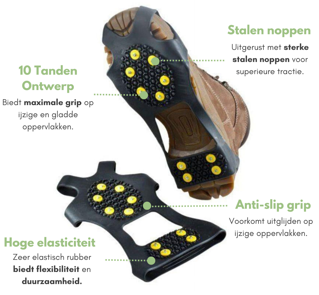 Blijf veilig en stabiel op ijzige oppervlakken met onze hoogwaardige IJsspikes. Ontworpen voor maximale grip en duurzaamheid, ideaal voor wandelen, hiken, en rennen in de winter.