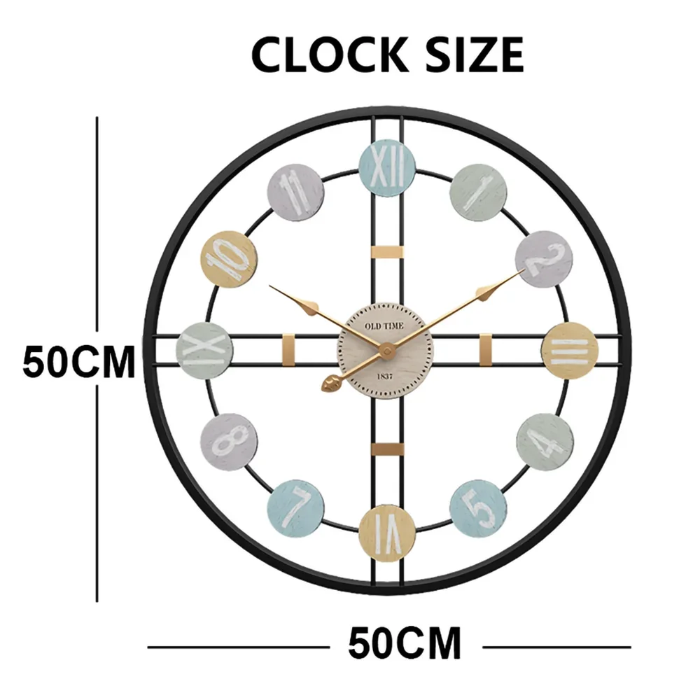 StilTijd – Grote Vintage Wandklok met Romeinse Cijfers en Metalen Frame