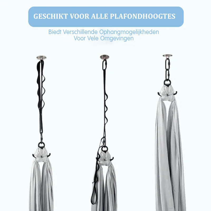 Geschikt voor Binnen en Buiten Eenvoudig te monteren aan een plafond, deurkozijn of boom, zodat je het zowel binnen als buiten kunt gebruiken.
