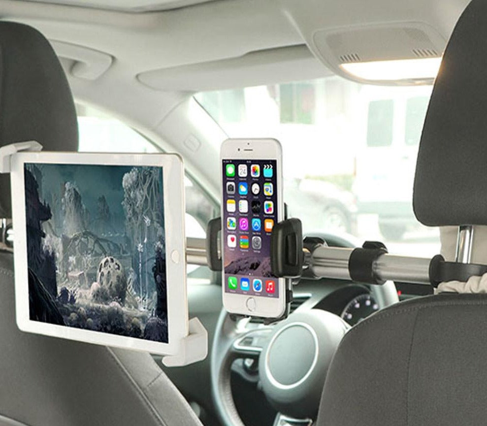 Met deze universele tablet en smartphone houder kunnen de kinderen achterin heerlijk een film kijken wanneer je onderweg bent. De tablet en smartphone houder is eenvoudig te bevestigen aan de hoofdsteun van je stoel en ook de tablet en smartphone zelf zet je gemakkelijk vast door de uittrekbare klem.