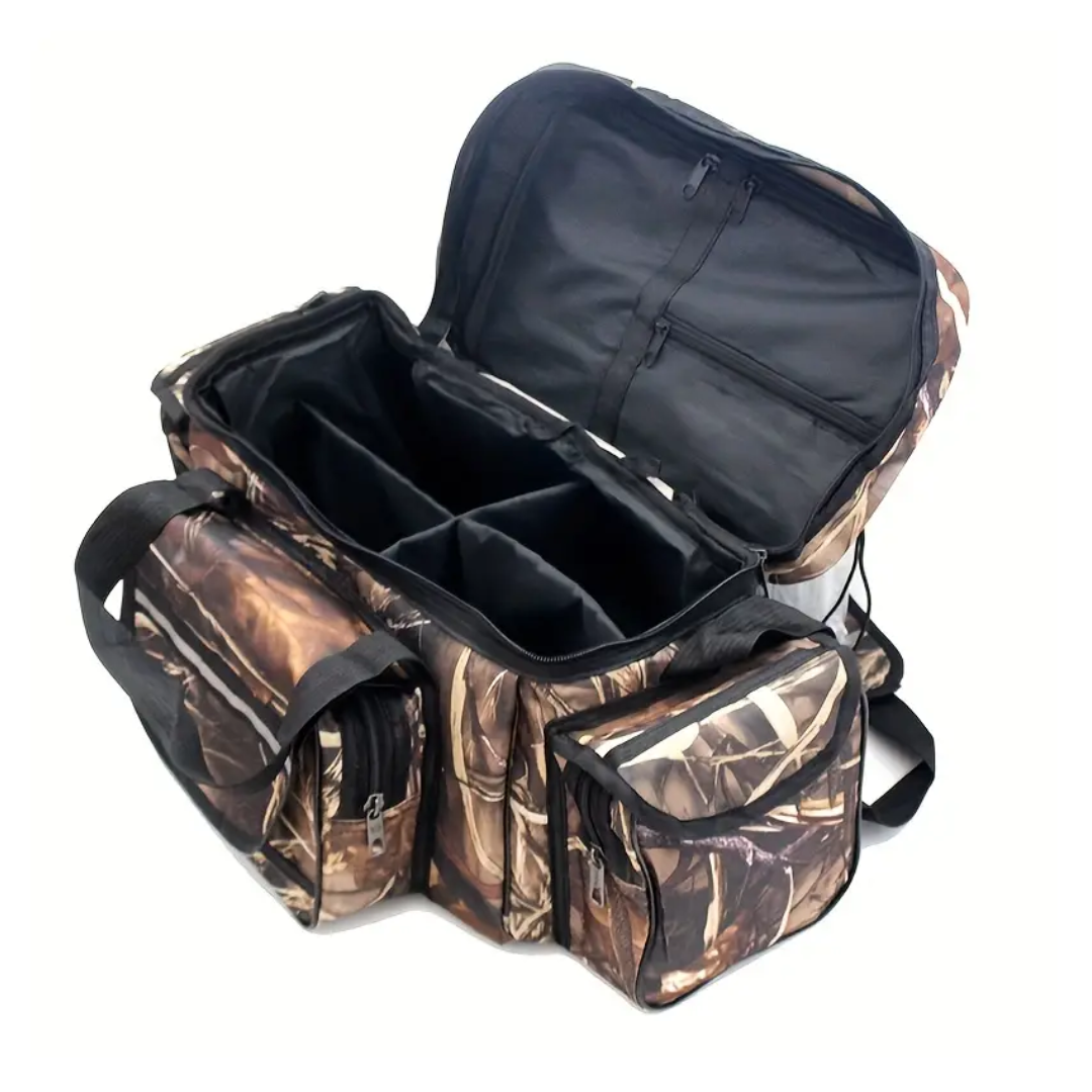 Duurzaam Materiaal: Deze tas is gemaakt van zeer sterk 600D nylon en gaat lang mee. De waterdichte PVC-coating op de achterkant van het materiaal voorkomt effectief dat je visspullen nat en roestig worden.
