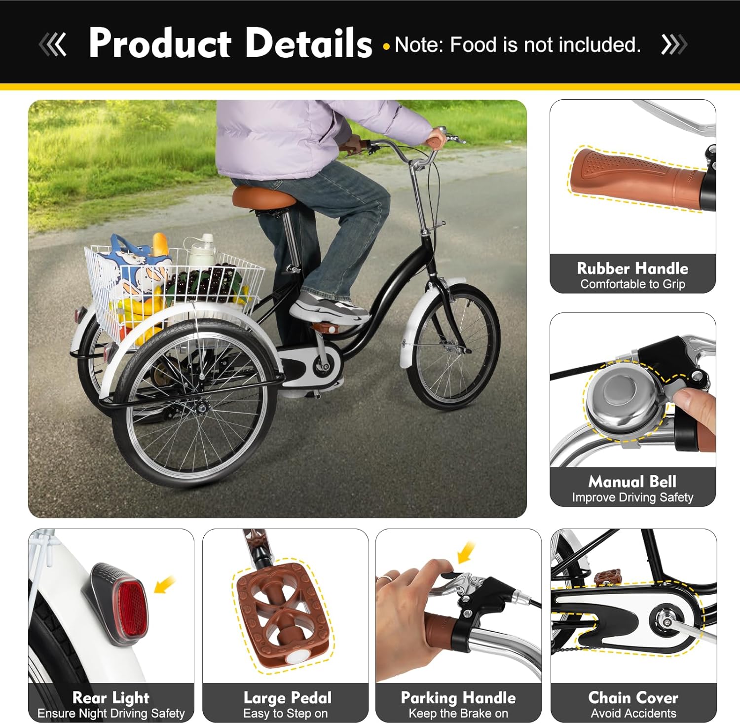 Wil je milieuvriendelijker, gezonder én comfortabeler reizen? Dan is deze 20 inch driewieler voor volwassenen precies wat je zoekt! Geniet van een veilige en duurzame rit terwijl je tegelijkertijd in beweging blijft. Moet je boodschappen doen? Geen probleem – verse groenten en fruit vervoer je eenvoudig in de ruime mand achterop.