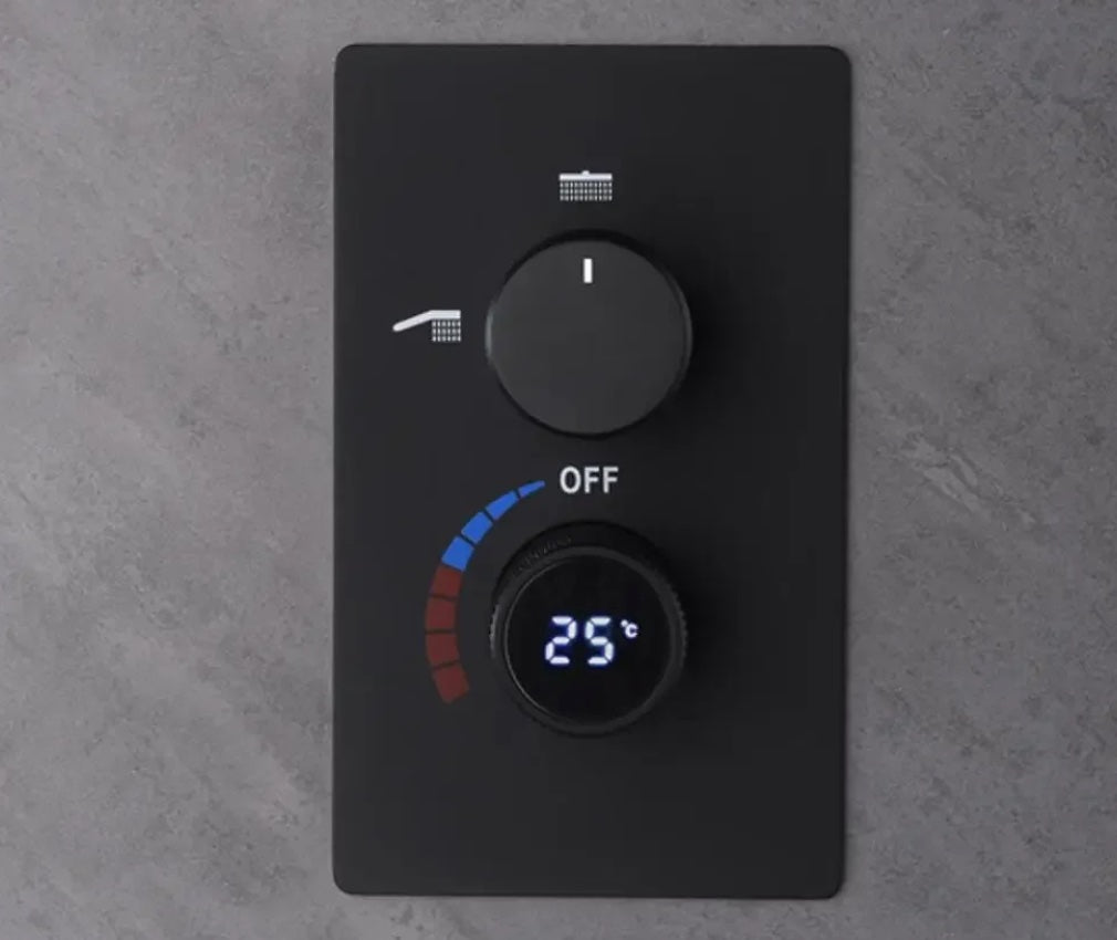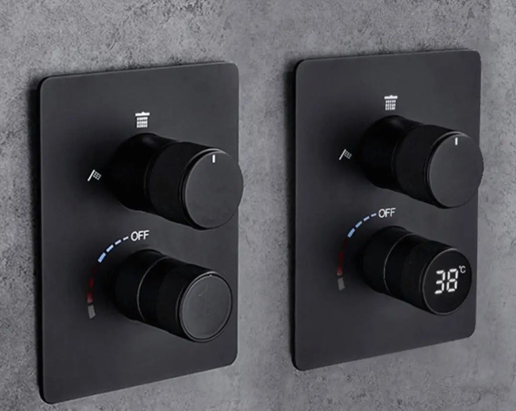 VoordeelPaleis® Aqua-AeroLine Digitale Doucheset Inbouw Douchekraan Bermuda Digitaal LCD Display Mengkraan 12 inch | 30 cm regendouche 2-weg zwart