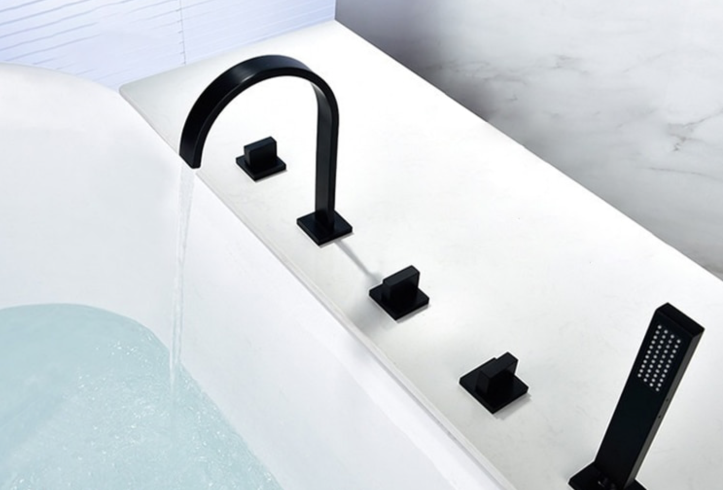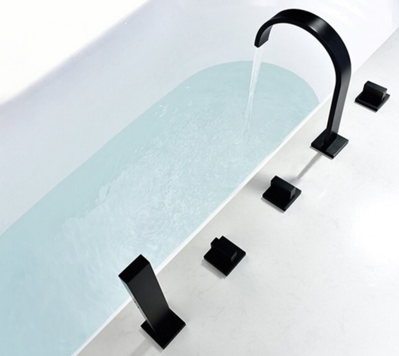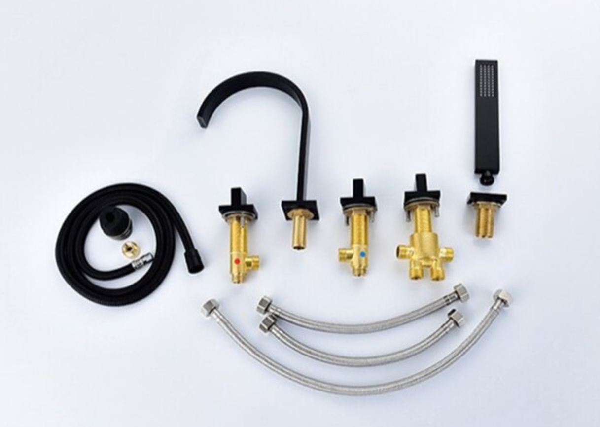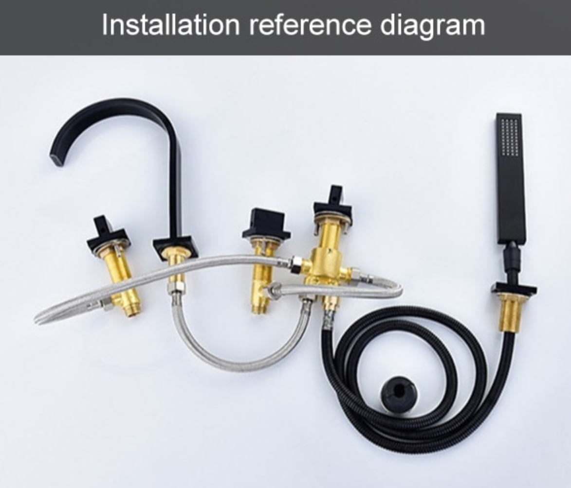 De badkraan set is te verkrijgen in mat zwart en chromen uitvoering. Alle installaties accessoires worden meegeleverd.