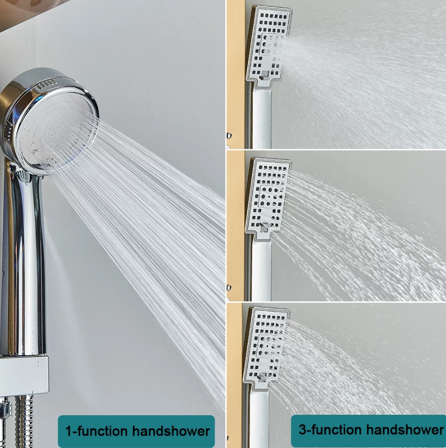 Voor iedere functie (waterval,hoofddouche, jets en handdouche) is een aparte schakel-knop op het paneel aanwezig. Naar keuze kan hiermee geschakeld worden naar 1 van de verschillende douche- functies.
