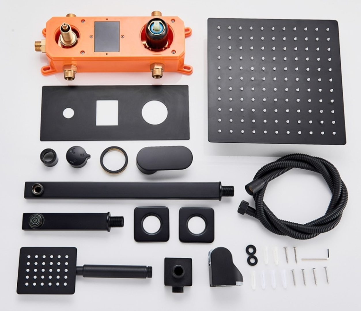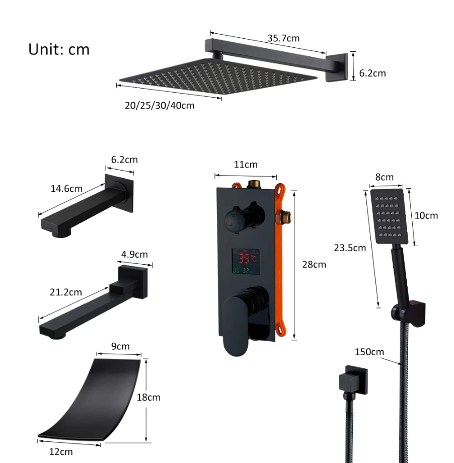 De meest complete en luxe inbouw doucheset beschikbaar. Inclusief mengkraan unit met LCD scherm! Informatie over de temperatuur, tijdsklok/timer en nog veel meer informatie. Het LCD scherm werkt op de waterstroom en heeft dus geen Electra-aansluiting nodig.