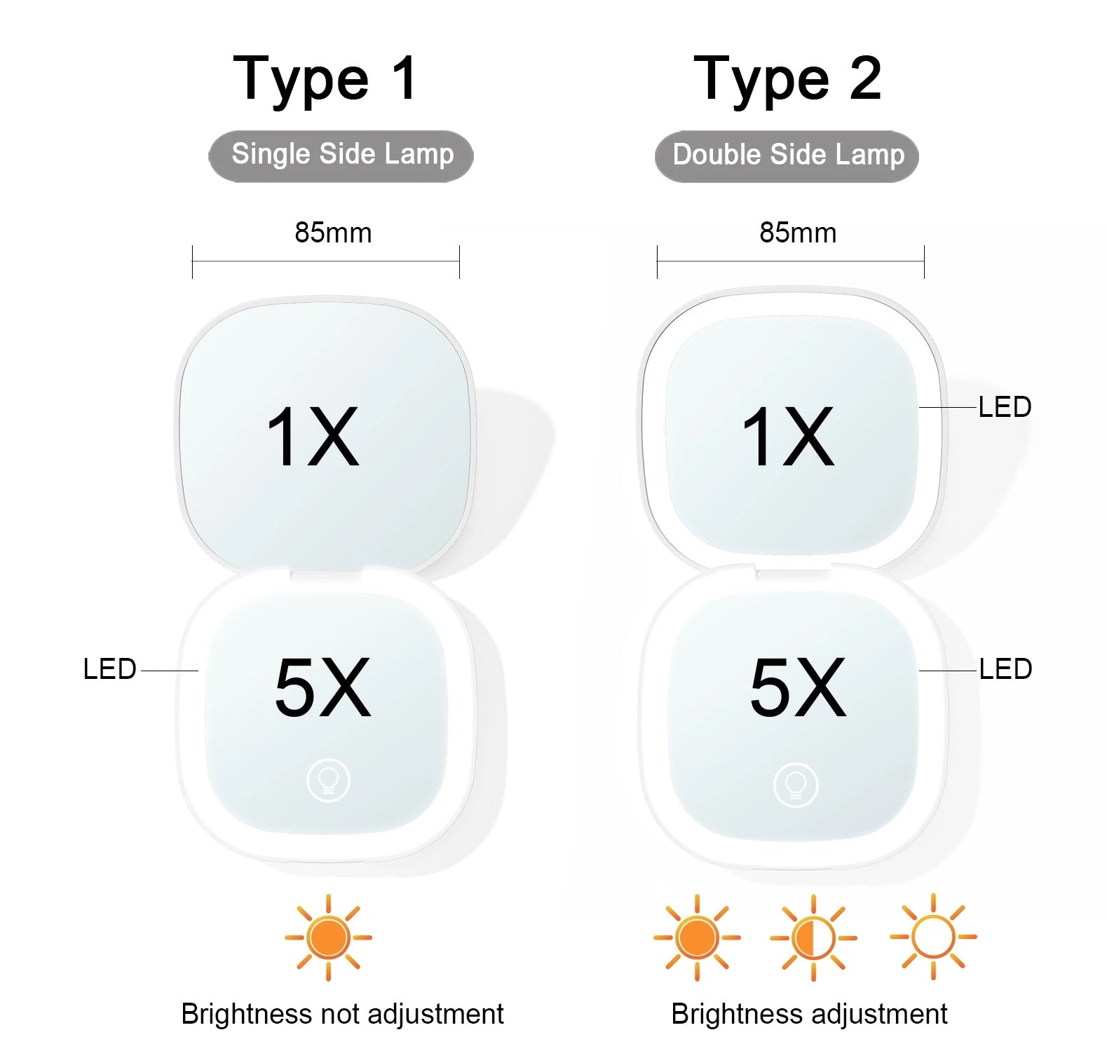 Mini Make-up spiegel VoordeelPaleis® HighLine met LED Verlichting USB 5x Vergroting Wit