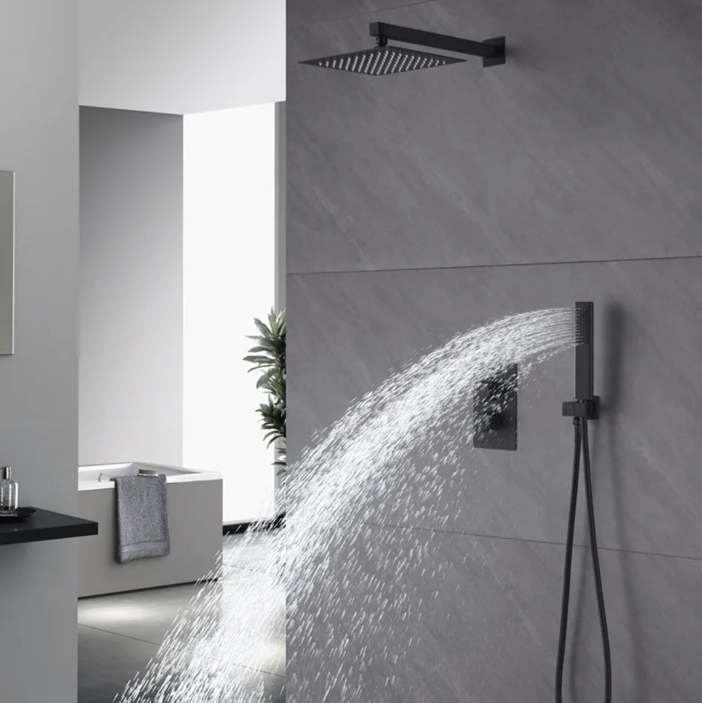 VoordeelPaleis® Aqua-AeroLine Digitale Doucheset Inbouw Douchekraan Bermuda Digitaal LCD Display Mengkraan 10 inch | 25 cm regendouche 2-weg zwart